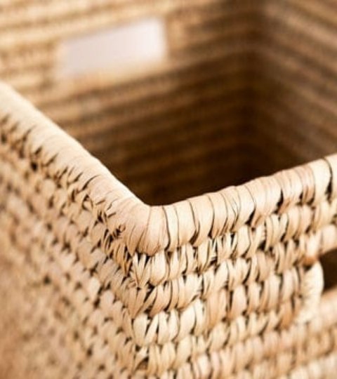 - Decorative storage that complements boho, rustic, and natural décor